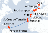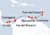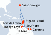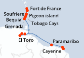 La città di Fort-de-France rivela un interessante patrimonio storico da scoprire durante il tuo scalo. Diventato, negli ultimi anni, sede dell'alto comando della Marina, il Forte Saint-Louis è uno dei monumenti imperdibili della città. Questa architettura militare è caratterizzata dallo stile Vauban e offre una splendida vista sulla baia dei Flamands. Accanto al forte si trova la piazza di La Savane. Questo grande spazio verde ospita la statua dell'imperatrice Giuseppina, simbolo di un periodo importante della storia dell'isola. Non lontano da qui potrai ammirare l'architettura delle influenze romane, egiziane, bizantine e arabi della famosa biblioteca Schoelcher.