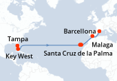 Affacciata sul Golfo del Messico, Tampa è bordata da due baie: Old Tampa Bay e Hillsborough Bay. Tampa è anche la porta degli Stati Uniti che si apre verso i paesi dell'America Latina. Grazie a questa posizione unica, la città ospita il primo porto della Florida, noto come il porto di Tampa. In questo porto transitano milioni di tonnellate di merci ogni anno. Ospita anche le grandi navi da crociera che partono per le più belle destinazioni dell'America Latina. Situato sulle rive del fiume Hillsborough, il centro di Tampa si trova molto vicino al porto. Durante una sosta a Tampa, i crocieristi possono esplorare la città in poche ore. Non lontano dal terminal crociere si trovano il Florida Acquario ed Ybor City.