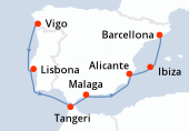 Vigo si trova nel sud-ovest della Galizia, in Spagna, nella provincia di Pontervedra. Aperta sull'Oceano Atlantico, questo scalo di crociera di punta è spesso incluso negli itinerari in Nord Europa e nel bacino del Mediterraneo . Seconda città della Galizia dopo La Coruña, Vigo si articola intorno al suo vasto porto. Essendo uno dei più grandi porti d'Europa, riceve navi da carico, da crociera e da diporto.
